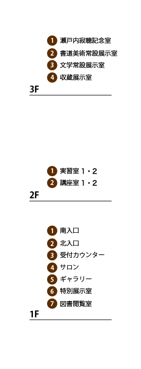 瀬戸内寂聴氏寄贈による日本近代女性史の貴重な研究資料などをガラスウォールを通してご覧いただけます。資料は調査・研究などにご利用いただけます。文学書道館の収蔵資料を展示紹介するコーナーも設けています。